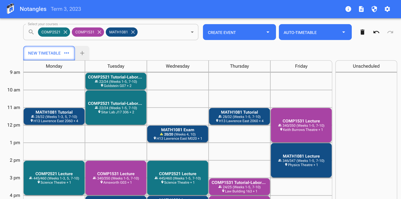 An interactive drag-and-drop timetable planner designed to help UNSW students plan their ideal weekly timetable.