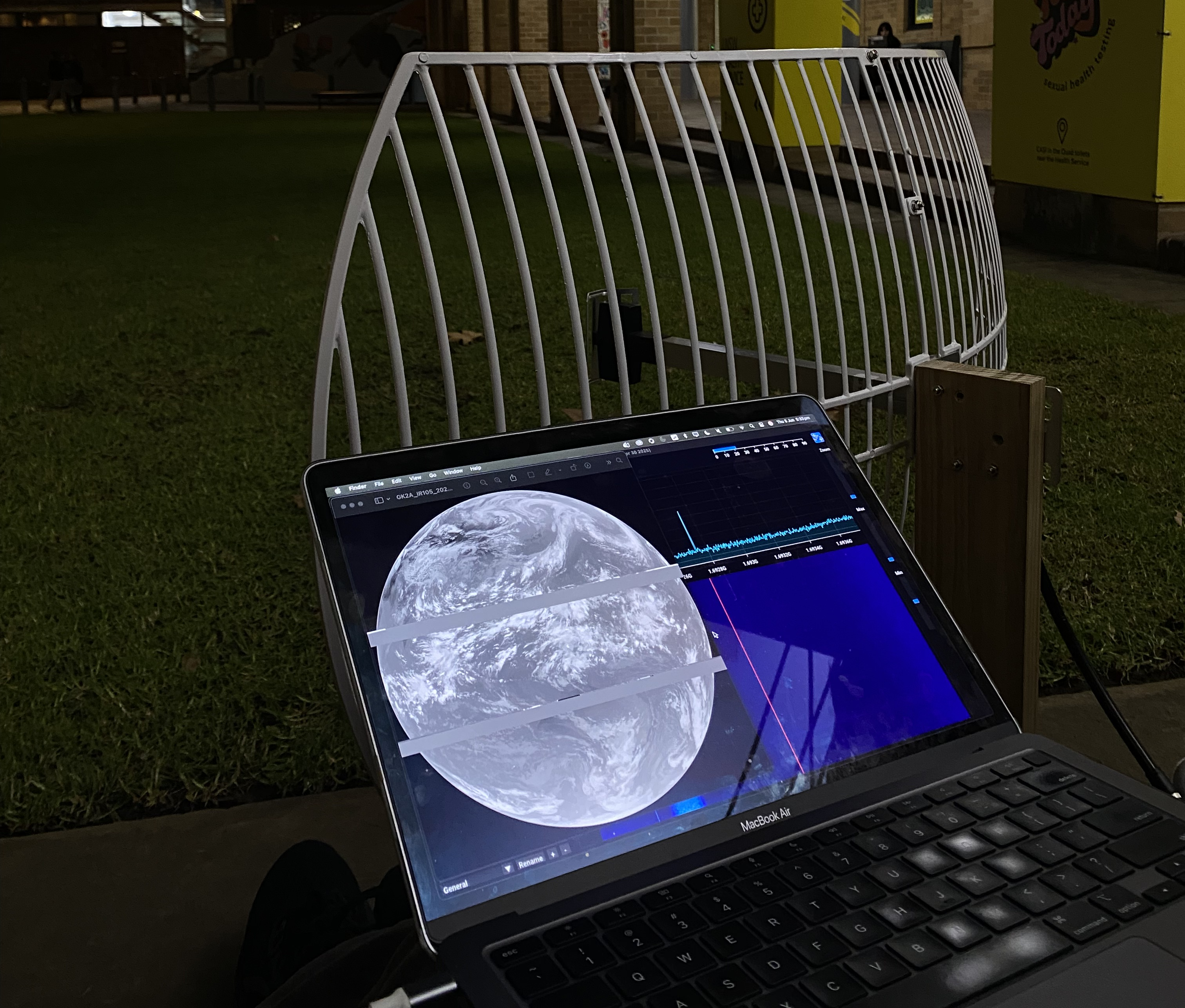 This ground station maintains an uplink and downlink connection with Bluesat's high altitude balloon and potentially their own cubesat in low Earth orbit.