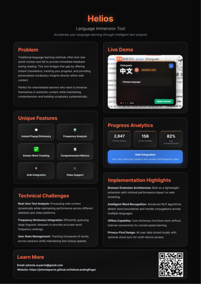 Helios is the ultimate Chrome extension for language learners. Get instant translations, track your progress, and build vocabulary while watching Netflix, YouTube, or browsing the web.