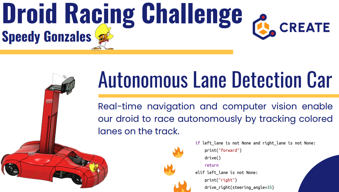 Autonomous racing droid using computer vision for lane detection and navigation.